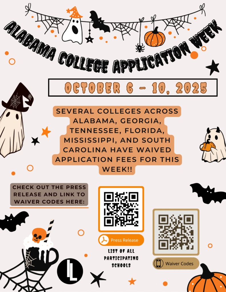 From Oct. 6-10 students can apply to many Universities and Colleges in Alabama and surrounding states COMPLETELY FREE!