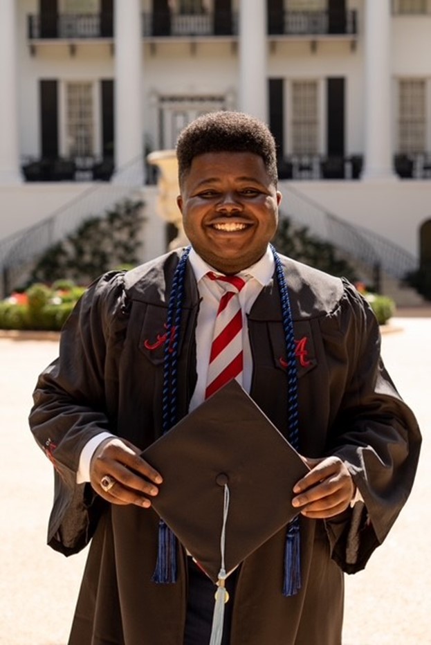 Jamal Cumbie is a December 2025 graduate of the University of Alabama. He has a B.S. in Secondary Education with a focus on Social Studies and he has hopes to eventually become an educator. During his time at UA, Jamal was an active member of the Alabama REACH program, helping to support students from foster care backgrounds. He founded and served as president of the REACH for Success student organization, where he worked to empower and mentor fellow foster youth. Jamal’s passion for education and advocacy continues to drive his commitment to making a difference in the lives of young people.